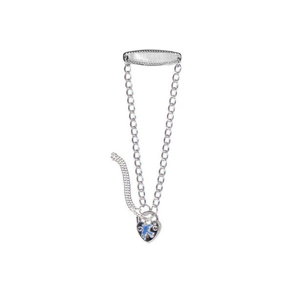 Sterling Silver Child Id Bracelt With A Blue Bird Padlock And Safety Chain