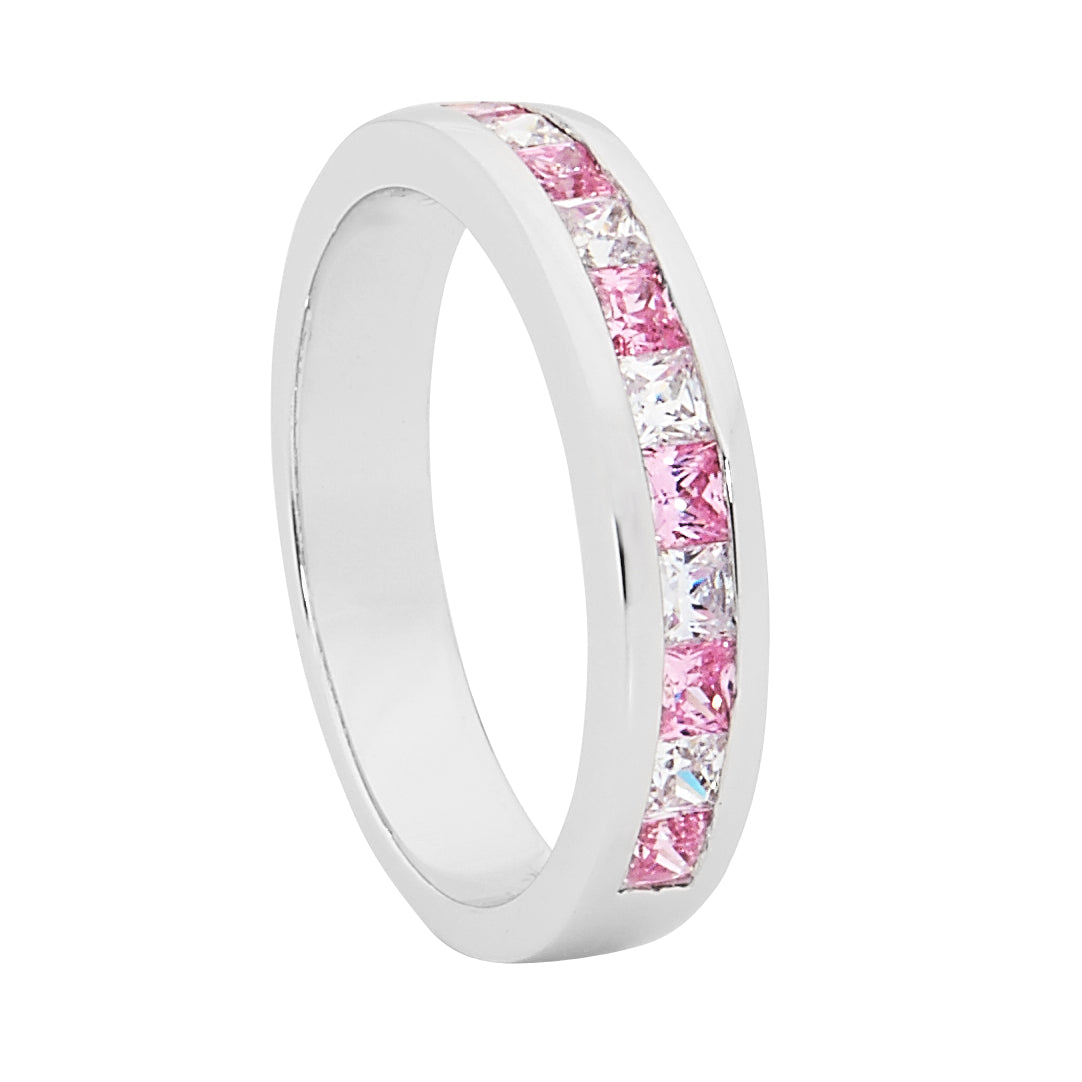 Sterling Silver Pink And White Cubic Zirconia Princess Cut Ring